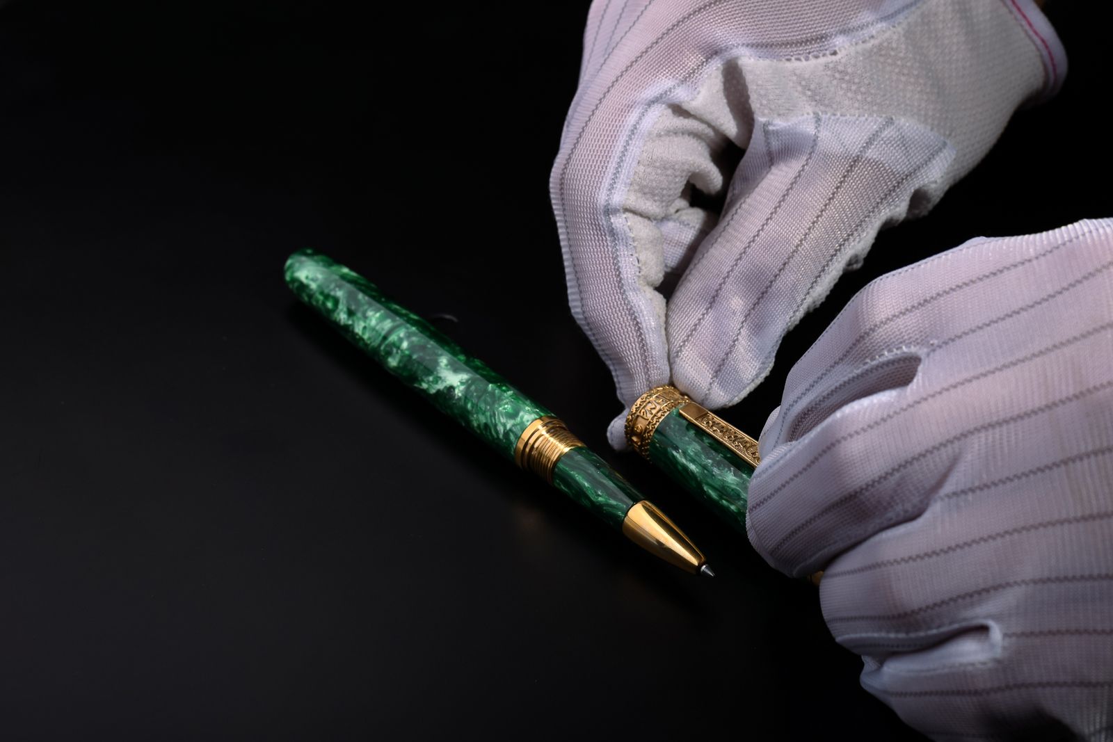 Na pojedinim modelima, naročito na ceremonijalnom nalivperu SHAHA, metalni prsten sadrži motive inspirisane najstarijim pronađenim nakitom na ovim prostorima, fragmentima sa stećaka i bosančicom – pismom koje je stoljećima bilo dio svakodnevnog života.